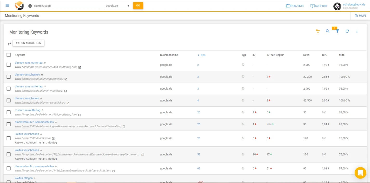 Von Local- bis International SEO: Im Monitoring überwachst du deine wichtigsten Keywords und erkennst Ranking-Veränderungen auf einen Blick. Der Monitoring OVI verrät dir deine Sichtbarkeit für relevante Suchbegriffe.