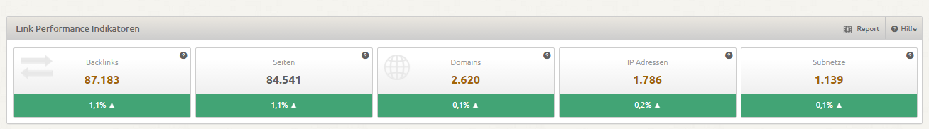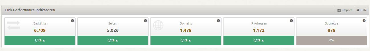 Schauen wir uns nun auch noch die Backlinkprofile der beiden Domains an. Auch hier zunächst der Blick auf die Performance Indikatoren: