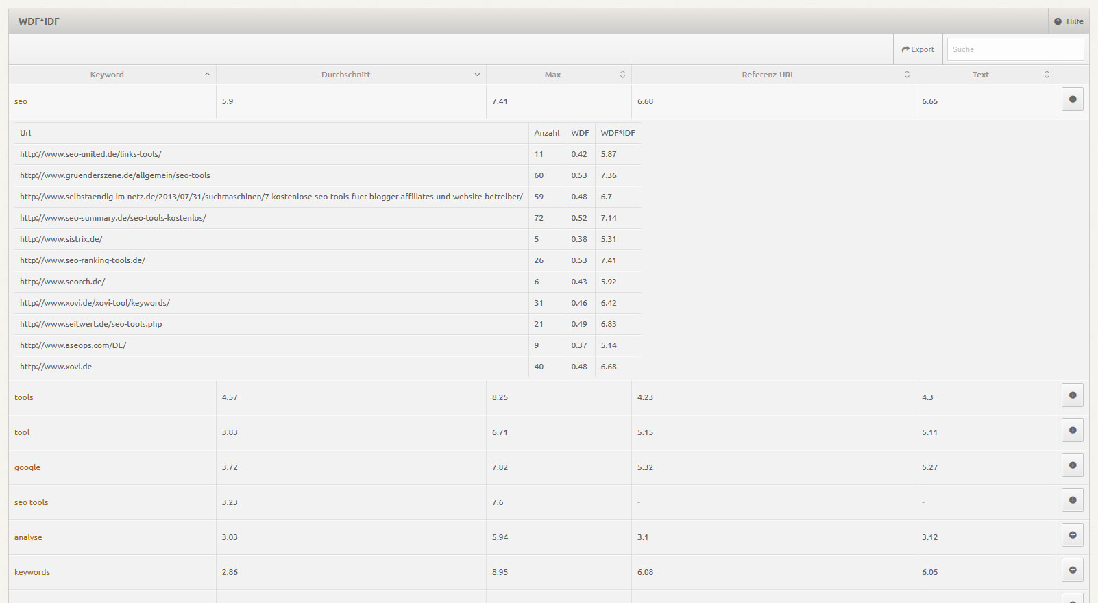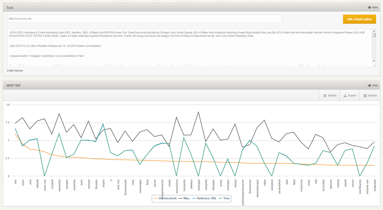 WDF*IDF-Analysen sind ab sofort im Onpage-Tool möglich: