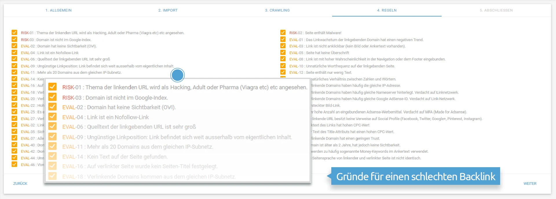 Erhalte einen Risikowert für jeden Backlink und entscheide, ob du ihn entfernen möchtest, oder nicht.